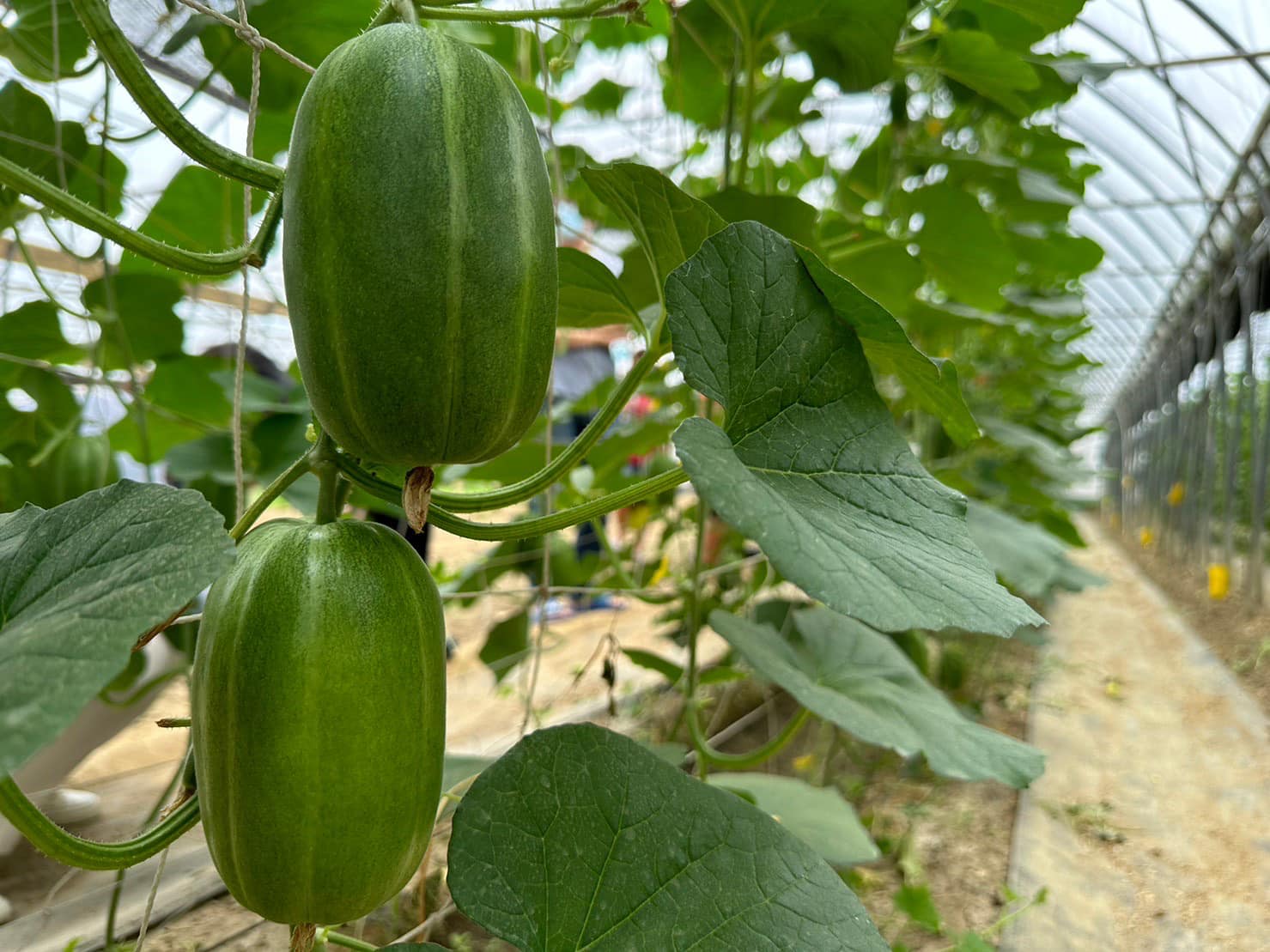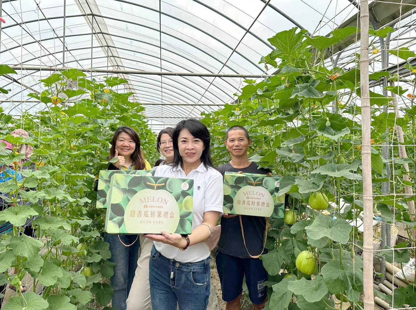 《新港鄉蔬菜農業經營專區》 農會連續3年推動溫室空心菜輪作美濃瓜 昨(7/6)日特在專區辦理示範田間觀摩會 推廣溫室空心菜田輪作美濃瓜 友善環境又兼顧農友收益 特邀請改良場瓜果專家黃圓滿副研究員 介紹新育種台南15號香瓜及嘉玉美濃瓜栽培管理 今年專區示範田種植嘉玉品種1400棵 台南15號品種400棵 預期7月中旬可開始採收 鮮果禮盒送禮美觀大方 昨日官網及豆食堂Line團購社群推出預購 馬上搶購一空 感謝大家熱愛