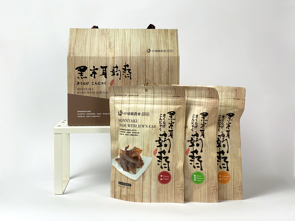 中埔鄉的黑木耳產量佔全台七成以上,是遠近馳名的黑木耳生產重鎮。為了讓優質的農產品行銷各地、提升農民收益,中埔鄉農會特別研發了「黑木耳蒟蒻片」,將兩種天然食材的營養價值完美結合,打造出輕盈無負擔的健康食品。